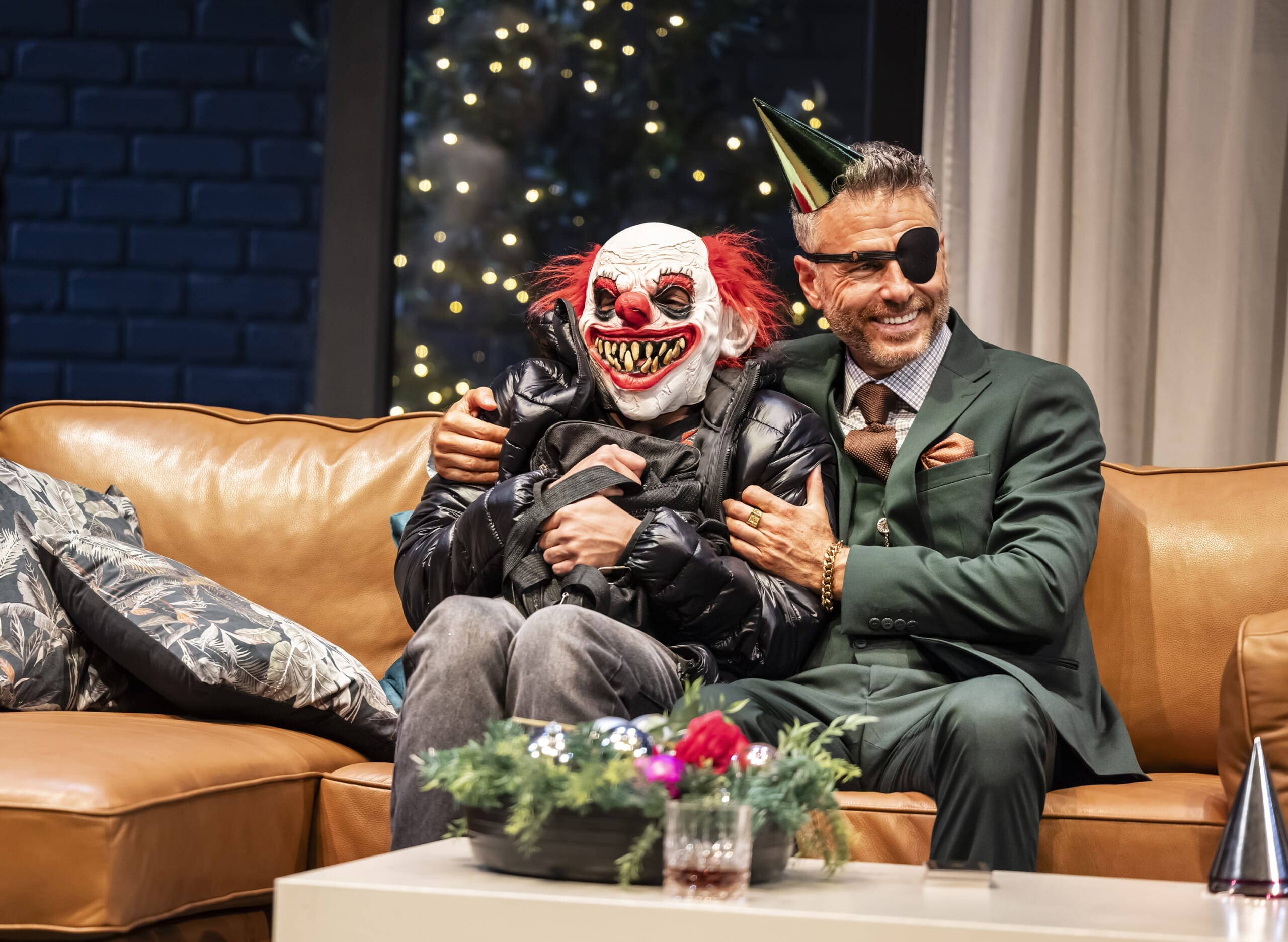 We meet Jonny ‘The Cyclops’ – the notorious gangster, his glamorous wife, his trigger-happy sidekick, his mum—who’s seeing things, her very jittery carer, plus a vicar who’s hiding something and a nervous burglar dressed as a clown.