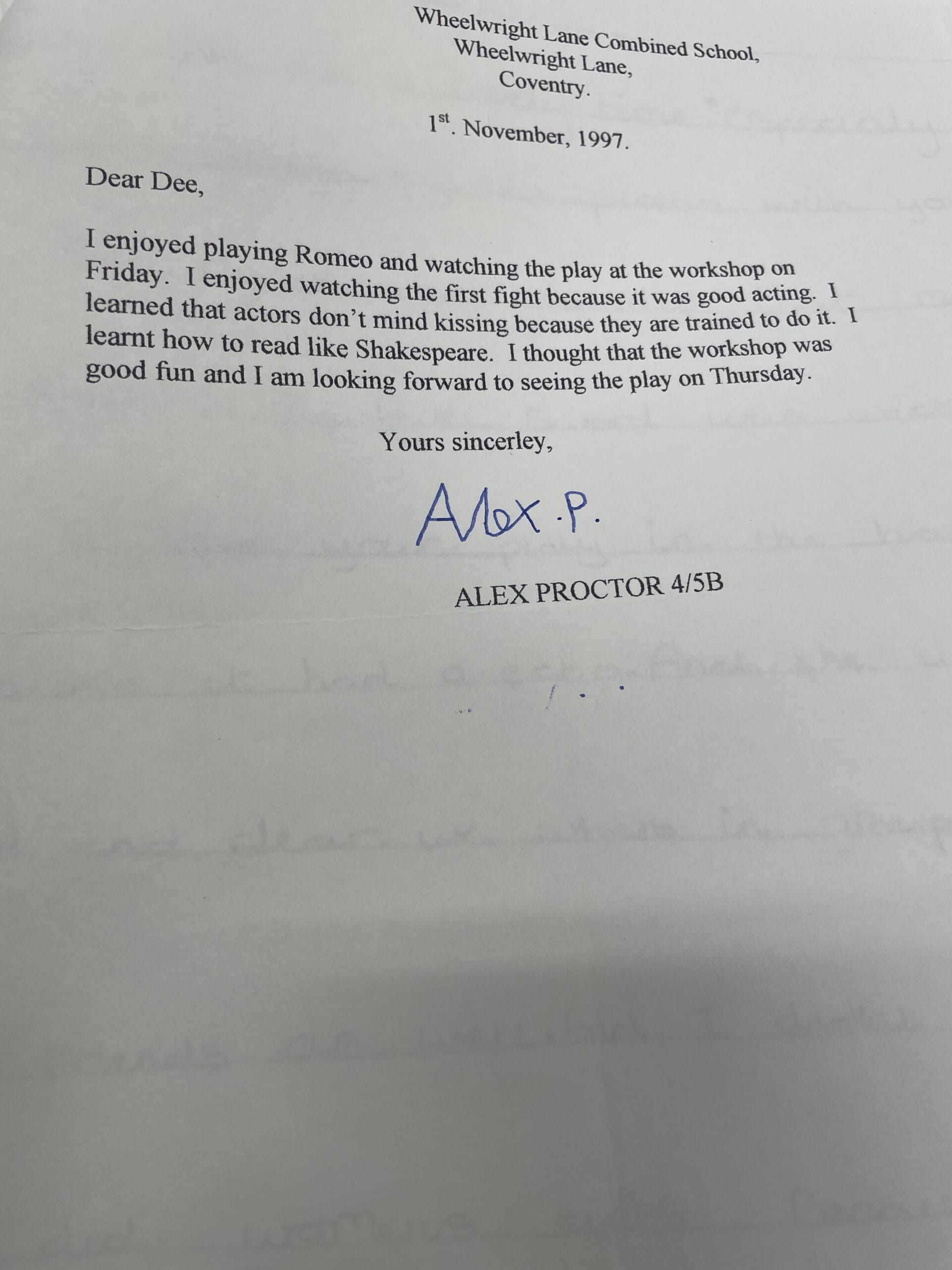 Thank you letters from Children at Wheelwright Lane Primary School, 1997.