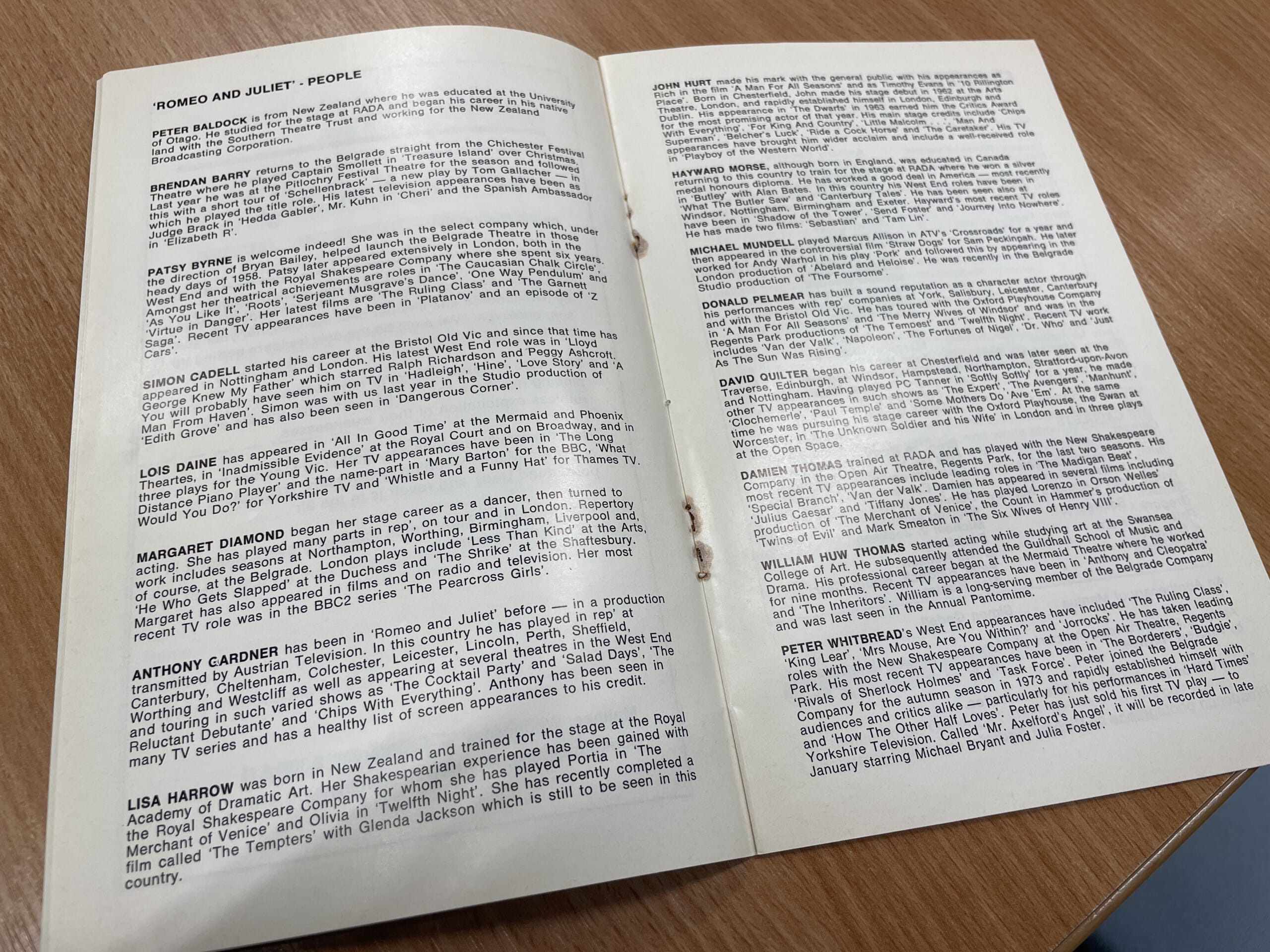 Programme: Romeo and Juliet at the Belgrade Theatre, Directed by John Ginman, 1980.