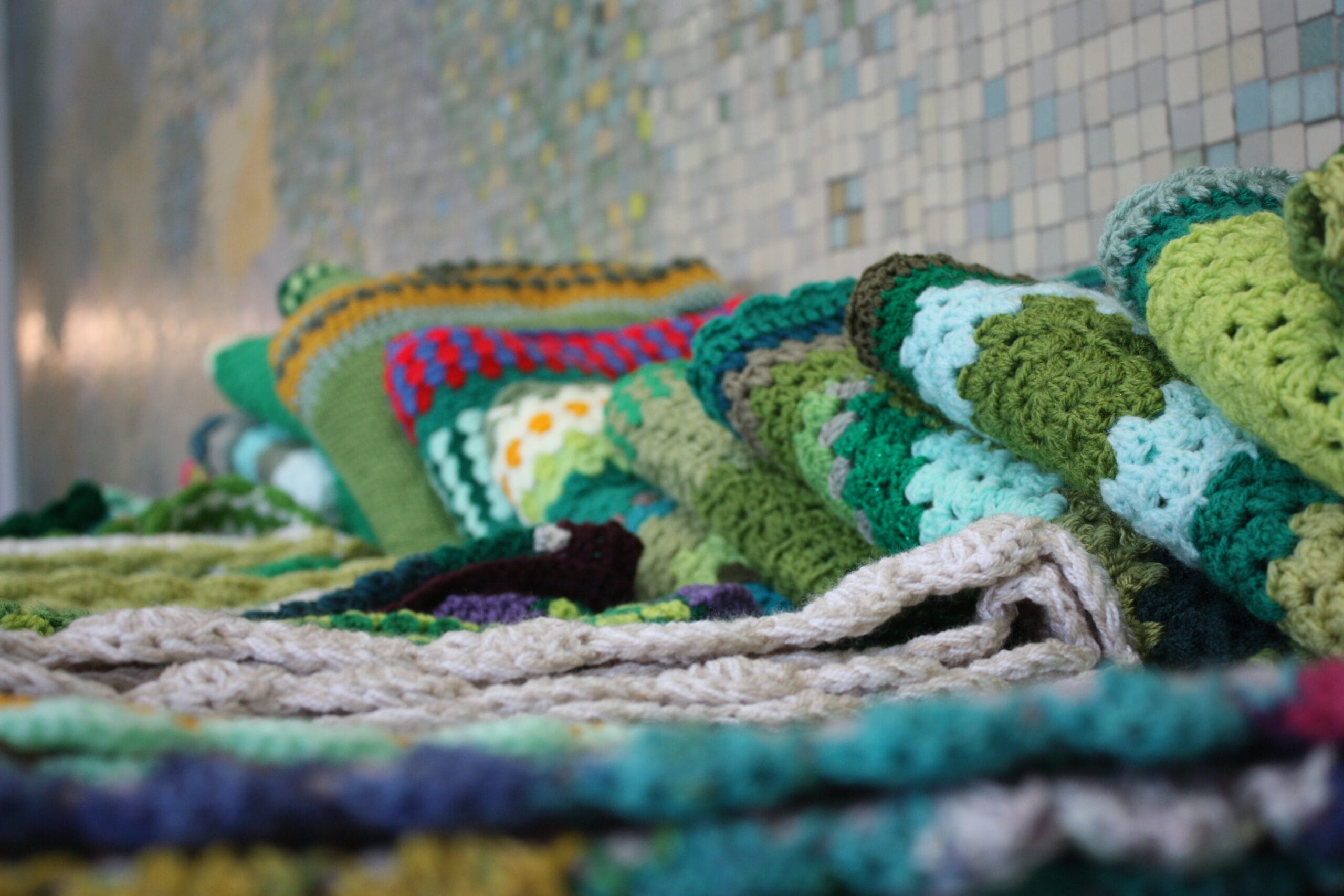 As the blanket needed to be so large, the group decided to do a call out to local people to join in the big knit and were thrilled to receive an influx of donations of green wool and knitted/crocheted squares to add to the blanket.